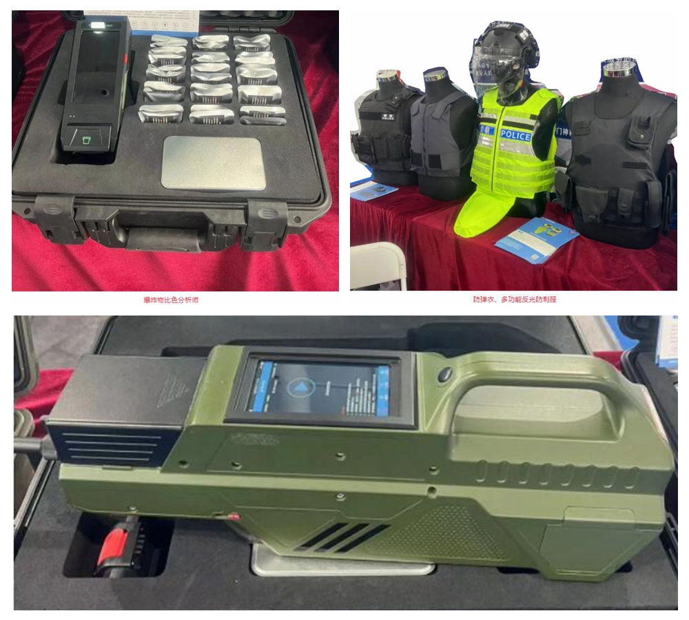 步入展會區,此次守門神展示的裝備用戶種類廣泛,其中包括爆炸物比色分析師、反光柔性防刺服、防彈衣、爆炸物氣氛探測儀等各種高科技產品。