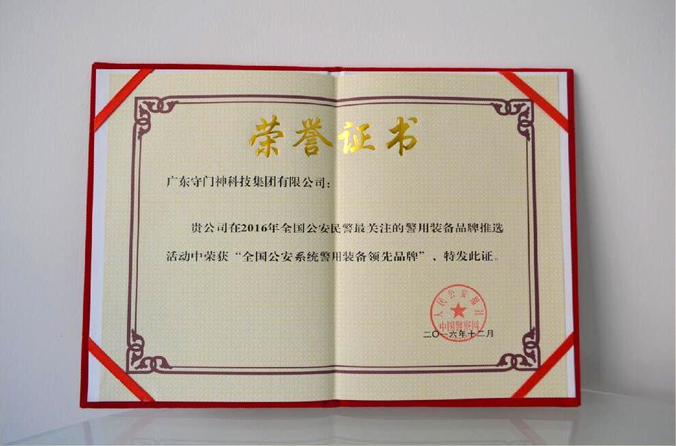 △Shoumenshen Technology Group won the national public security system police equipment leading brand honor certificate