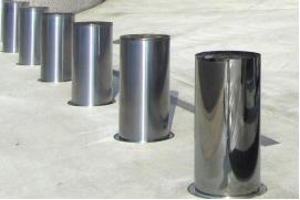 這種可自動升降式防撞柱能夠在短時間內通過遙控設施實現自動升降,鋼柱體完全降下時,路面暢通無阻,防撞柱升起后,對車輛進行阻攔,鋼柱體底座和外套筒都在地下,通過傳力作用,把中央柱體所受的沖擊力和彎矩傳到地基里。
